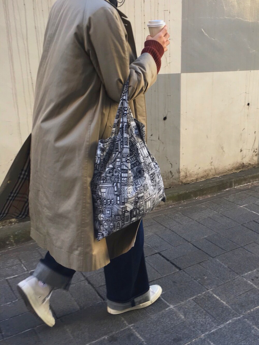 トレンチにワイドデニム カジュアルに