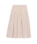 柔らかな毛足を持つラクーン100%のニット。 チクチク感がなくふんわりとした優しい着心地です。 カジュアルにも、上品な女性らしいスタイルにもおすすめで、 合わせるアイテムで印象の変化も楽しめます。 身頃とフードはコンパクトなサイズ感に仕上げ、 袖はたっぷりとギャザーを寄せたパフスリーブになっております。 程よくハリ感のあるタフタ素材のスカートと合わせました。 人気のティアードラインで長すぎないミディ丈なのも嬉しいポイントで 身長問わず着ていただけるアイテムです。
