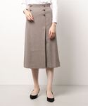 プリーツ加工をほどこしたスリーブがコーディネートのアクセントになるブラウス。 スカートと合わせて女性らしいコーディネートに仕上げました。 フロントの大ぶりな金ボタンをポイントに、足をキレイに見せる隠しプリーツと、 スリットをデザインしたAラインスカート。 すっきりとしたシルエットで、この冬はロングブーツと合わせて楽しみたいスカート。