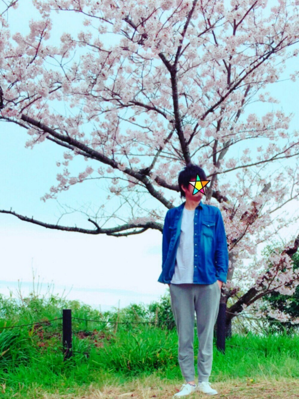 雨上がりの桜と一緒に。 実はここは小高い丘にあって、このバックは海なんですよね。 天気さえ良ければ桜と海がハッキリ写ってバッチリなんだけどなー。 みんなに見せてあげたいฅʕ•̫͡•ʔฅ 桜と合わせて緩いコーデ。 今日はオールGUです。