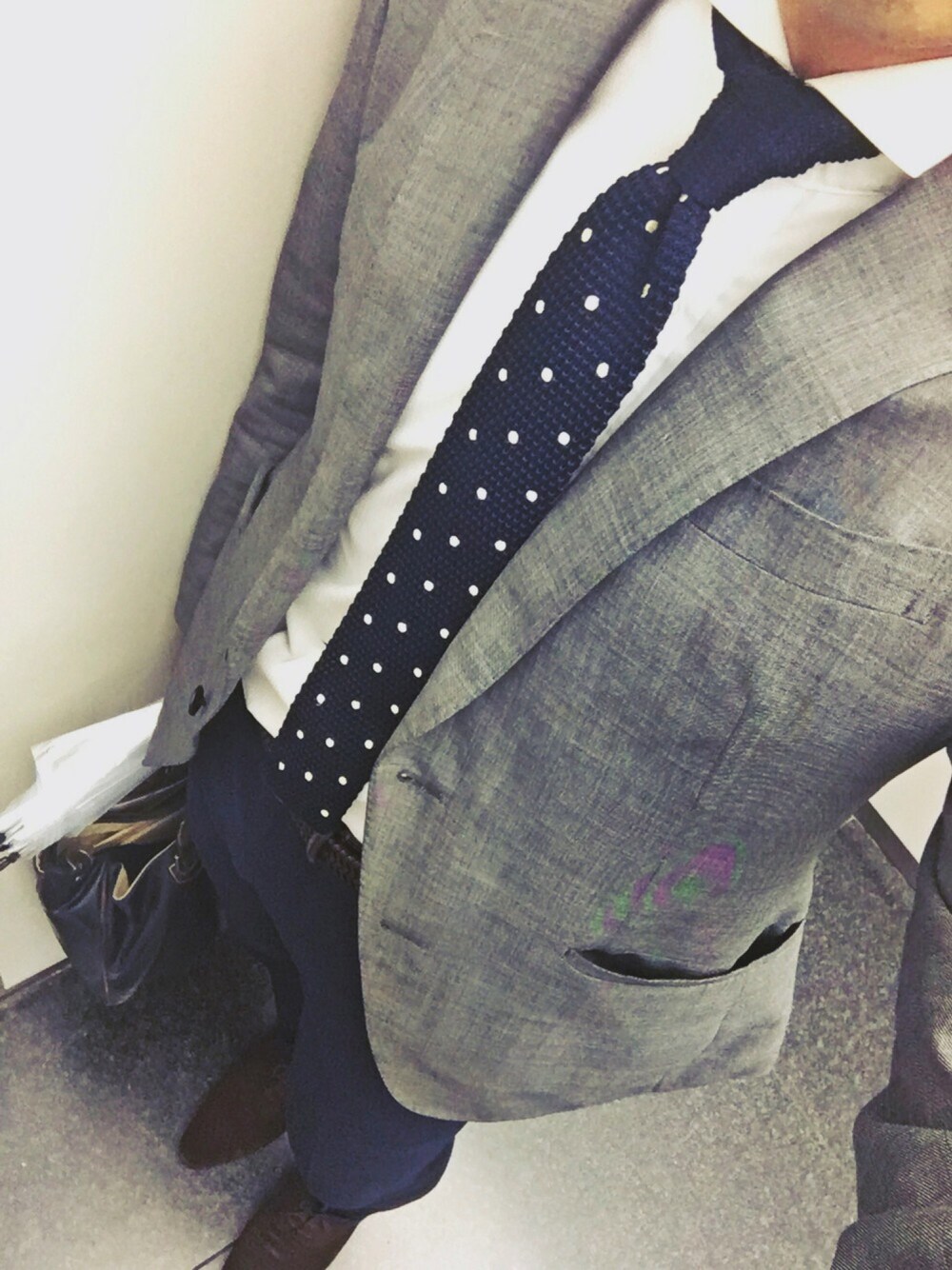 Jacket & Pants style👔👖 水玉ネクタイは、2年ぶり💧💧 雨の日スエードで🌂👞