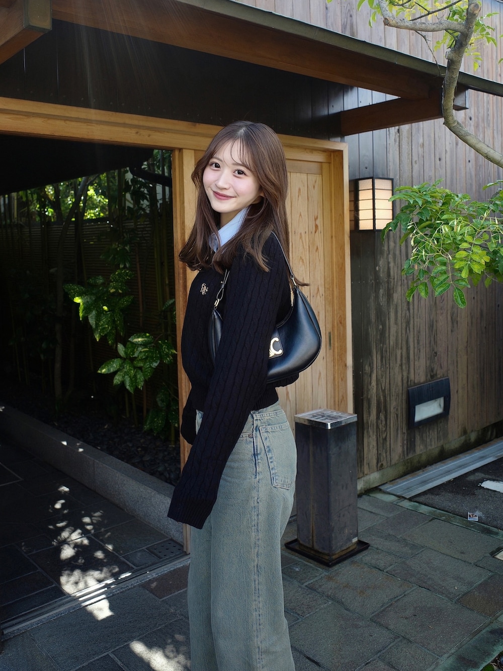 GENERAL IDEAのニット/セーター「wool cable v-neck pullover ウールVネックケーブルニットプルオーバー」を使ったコーディネート