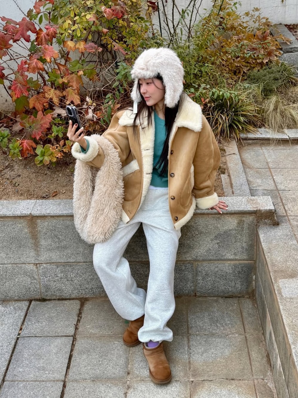 GENERAL IDEAのムートンコート「【GENERAL IDEA】ムートンボアコート / SHEARING CALLOR MUSTANG COAT」を使ったコーディネート