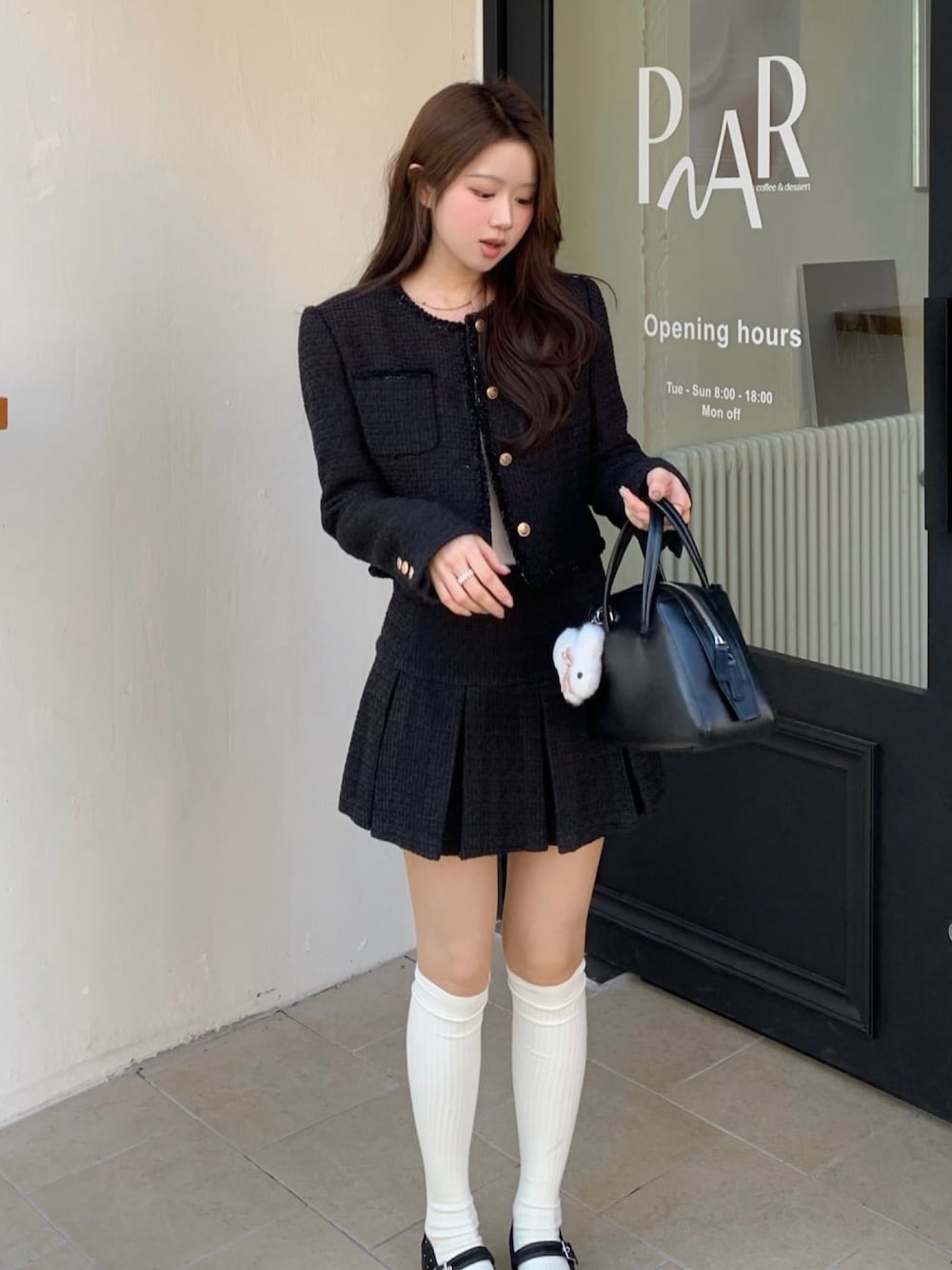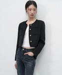GENERAL IDEAのノーカラージャケット「【GENERAL IDEA】クロップツイードジャケット / trimming crop tweed jacket」を使ったコーディネート