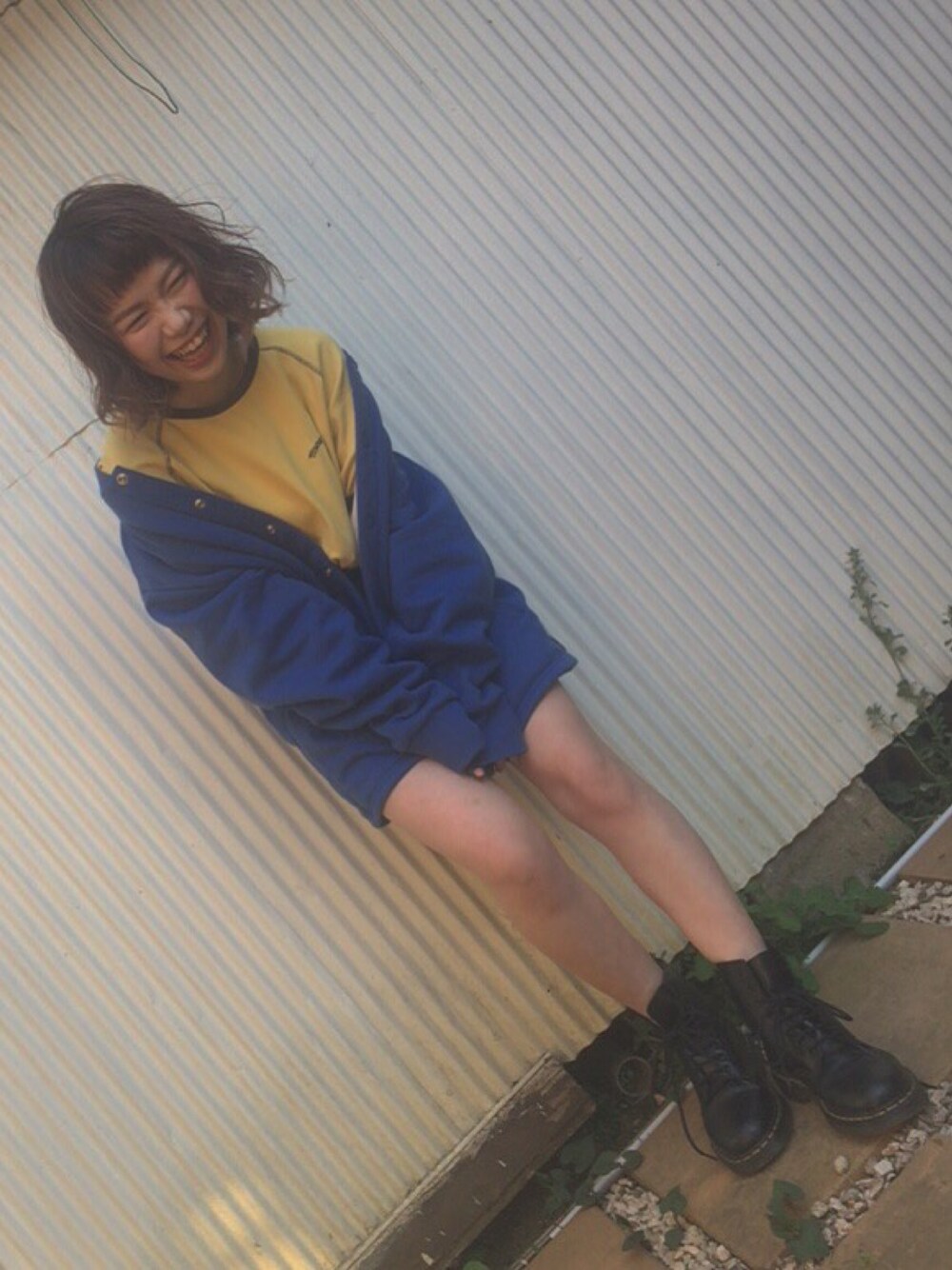 お久しぶりすぎる投稿!!笑笑 髪切ってイメチェンしました😆✨ オン眉に切りっぱなしボブ💇🏻💟 洋服は古着屋さんで購入🎵 ジャケット??とTシャツで2450円笑笑 愛用中のマーチンと合わせてボーイッシュに💁🏻♡
