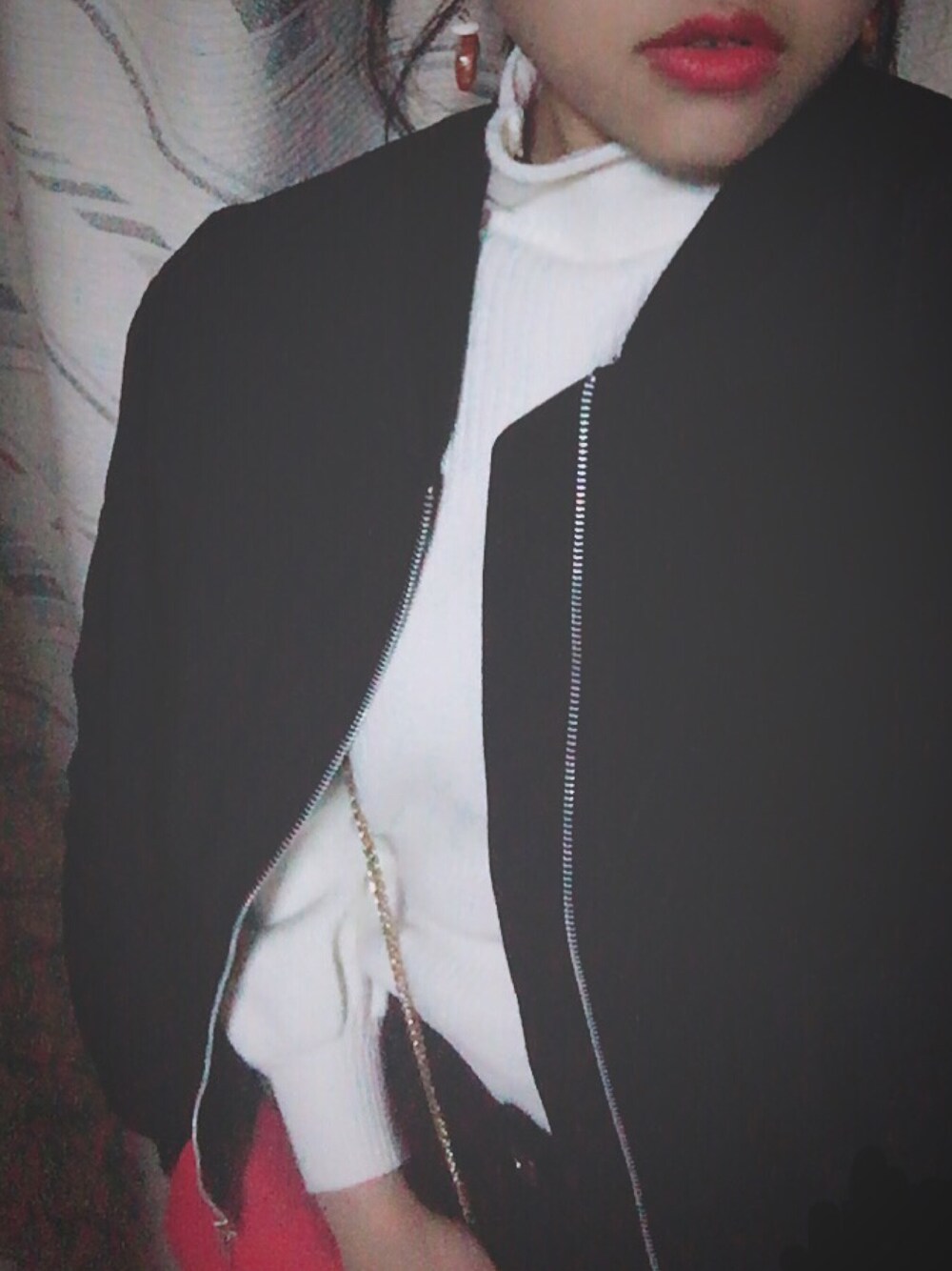 大人っぽコーデです モノトーンで揃えてショルダーバッグのピンクで色を添えました💞 MAー1は兄のお下がりです笑