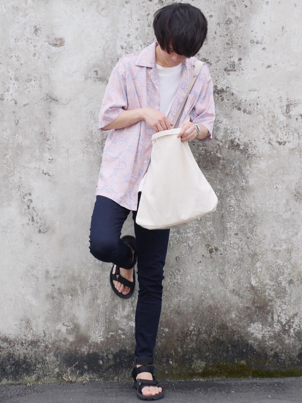 開襟柄シャツコーデ🙆♂️ 黒スキニーもおすすめだけどインディゴもおすすめ💫 《サイズ》 シャツ M Tシャツ M パンツ S サンダル 26 じゃあʕ•ᴥ•ʔ