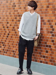 げんじのベスト「BEAMS / カノコ Vネック ルーズ ベスト」を使ったコーディネート