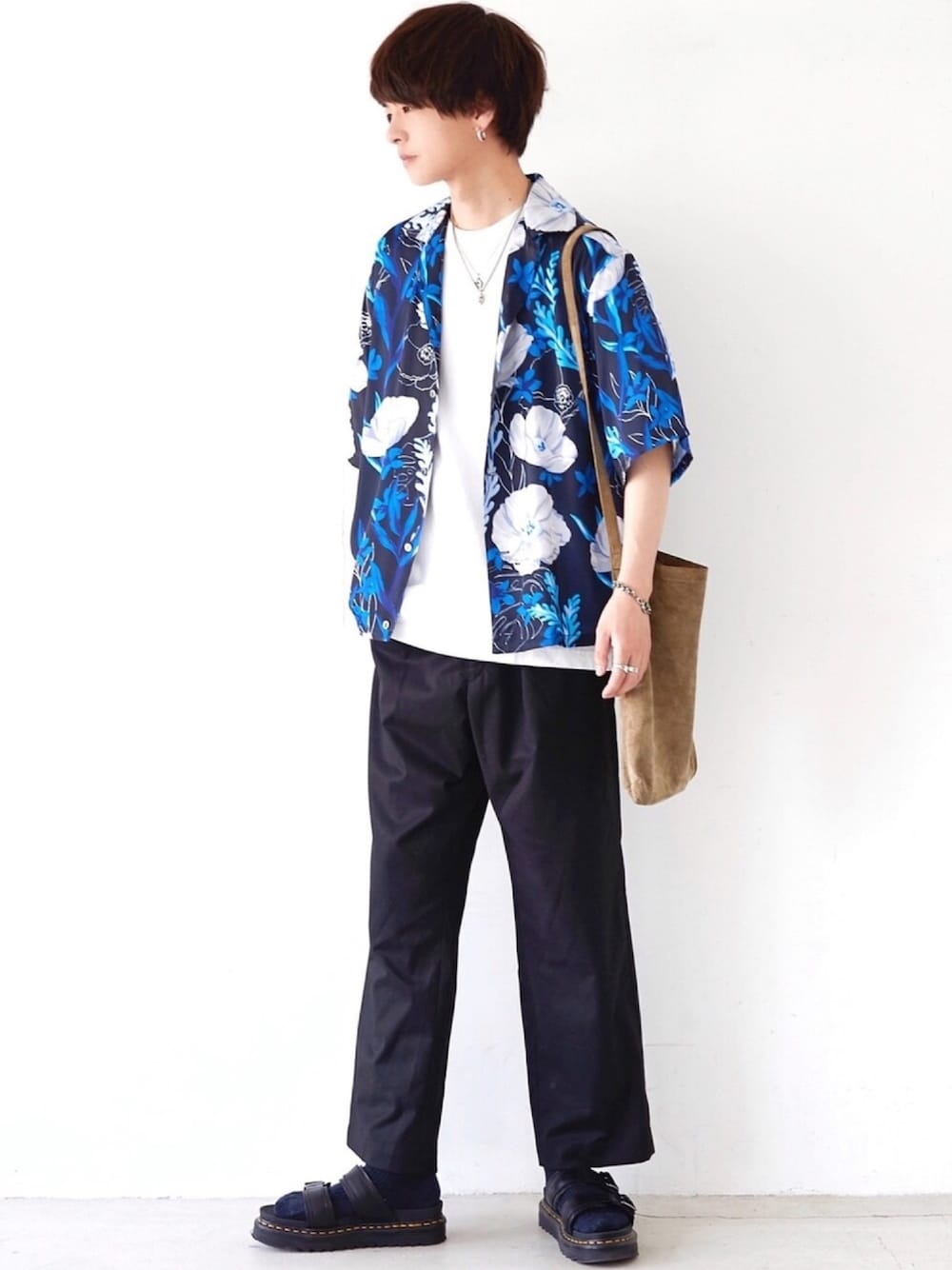 げんじのシャツ/ブラウス「2019春夏 FLOWER PATTERN S/S SHIRT」を使ったコーディネート