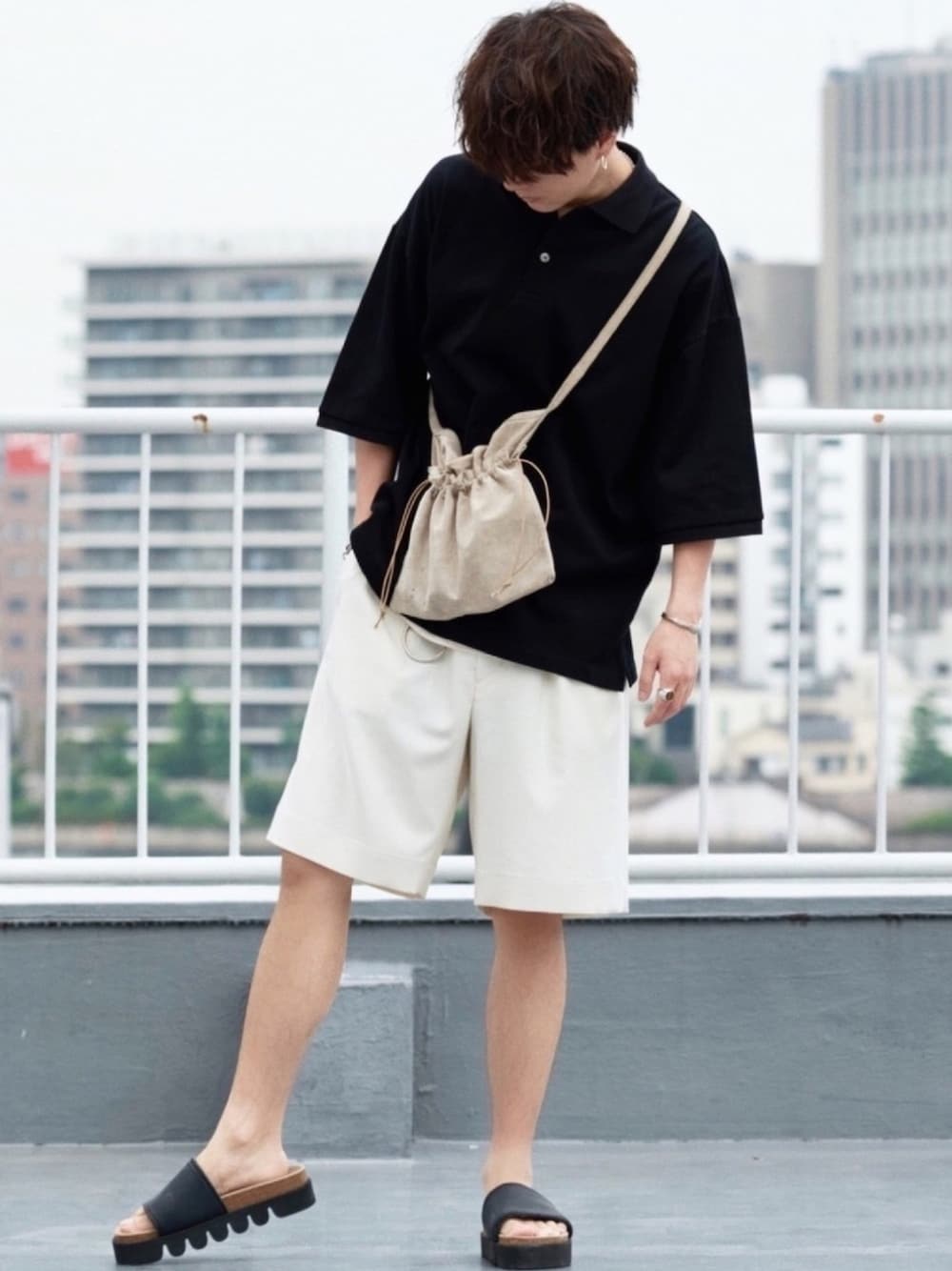 げんじのポロシャツ「OVER SIZED POLO【BLACK】」を使ったコーディネート