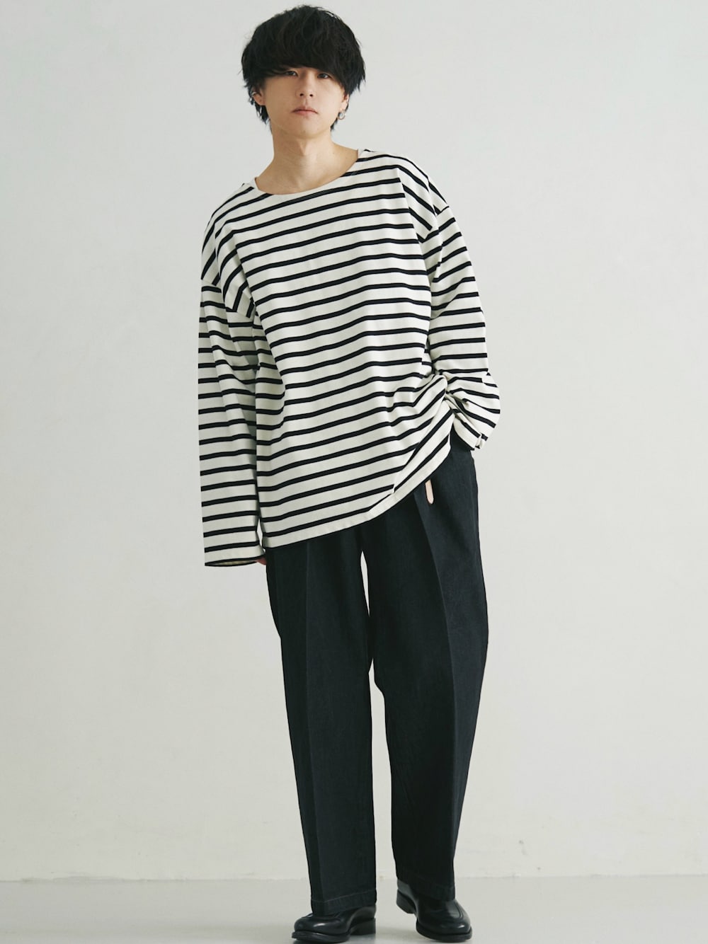 げんじのTシャツ/カットソー「BORDER WIDE L/S-TEE」を使ったコーディネート
