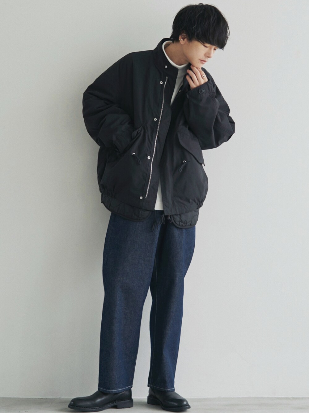 げんじのモッズコート「LAYERED 3WAY MILITARY BLOUSON(SHORT M-65)」を使ったコーディネート
