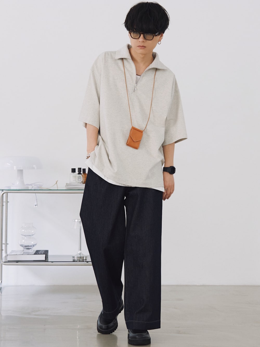げんじのTシャツ/カットソー「HALF ZIP LOOSE FIT TEE」を使ったコーディネート