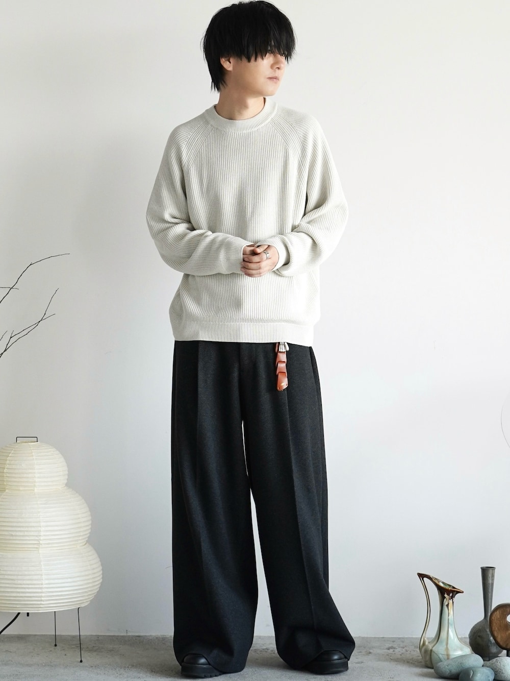 げんじのニット/セーター「STANDARD AZE MELANGE KNIT」を使ったコーディネート