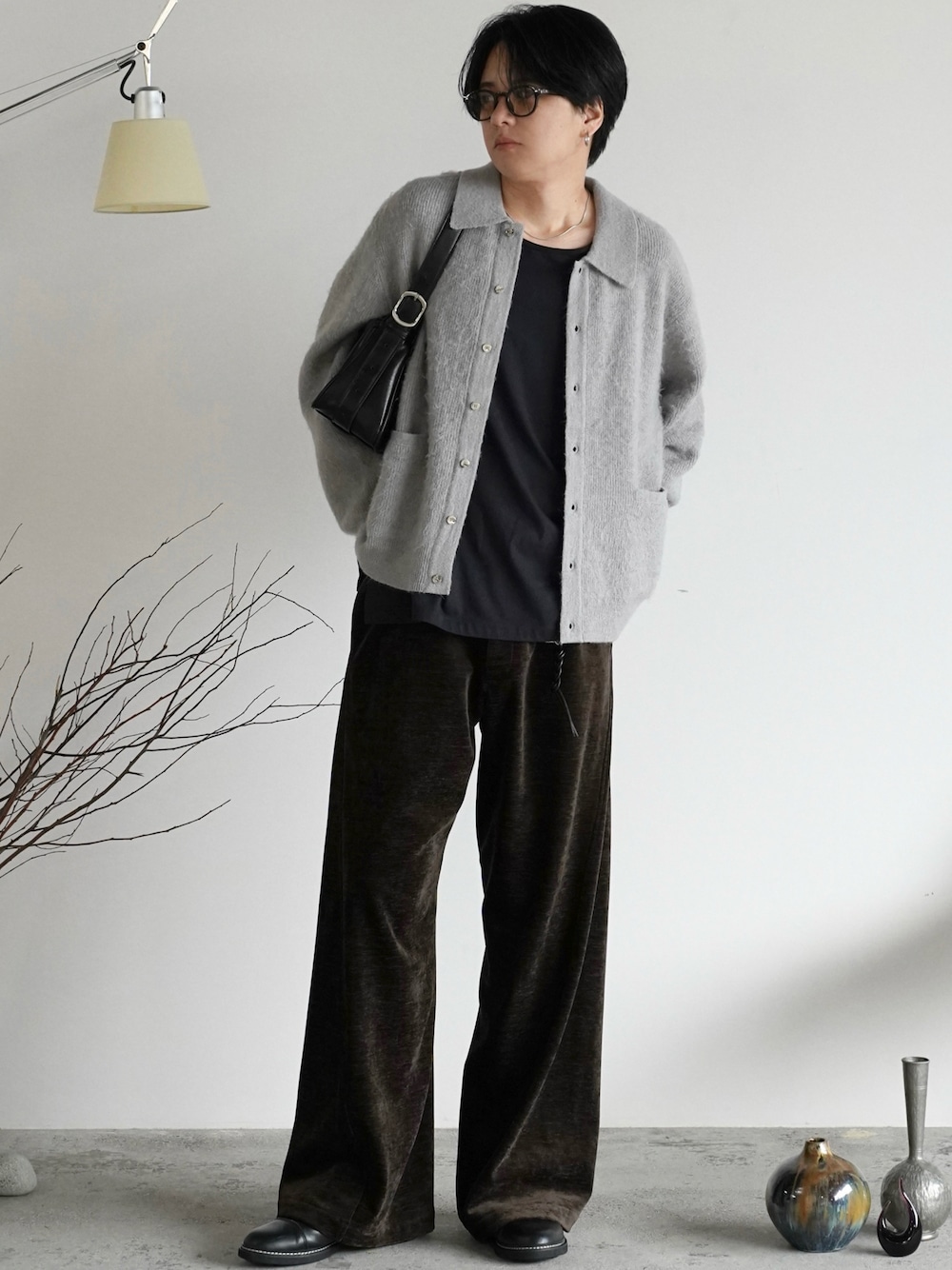 WASHED VELVET CURVE CUT WIDE PANTS いつもいいねありがとうございます! このボトムは上品になりがちなベルベット素材を、日常使いしやすい表情にアレンジ。 モール糸を使用し、ふっくらとした立体感と独特のぬめり感を表現しました…! 仕上げにタンブラー加工を施し毛並みをあえてランダムに崩すことで、無地ながらも奥行きのある表情に。 春先まで長く着用できる、程よい厚みの中肉素材に仕上げています! ------------------------------------- 【YouTubeチャンネル登録者数】 現在115万人!! ⇨『げんじ』 【Instagramフォロワー数】 現在28.2万人!! ⇨『@genji_official_』 InstagramやYouTubeでファッションを中心とした情報を発信中! お洒落初心者でも簡単にお洒落になれる服装や知識を紹介しているので、よかったら上記のアカウントをチェックしてみて下さい…