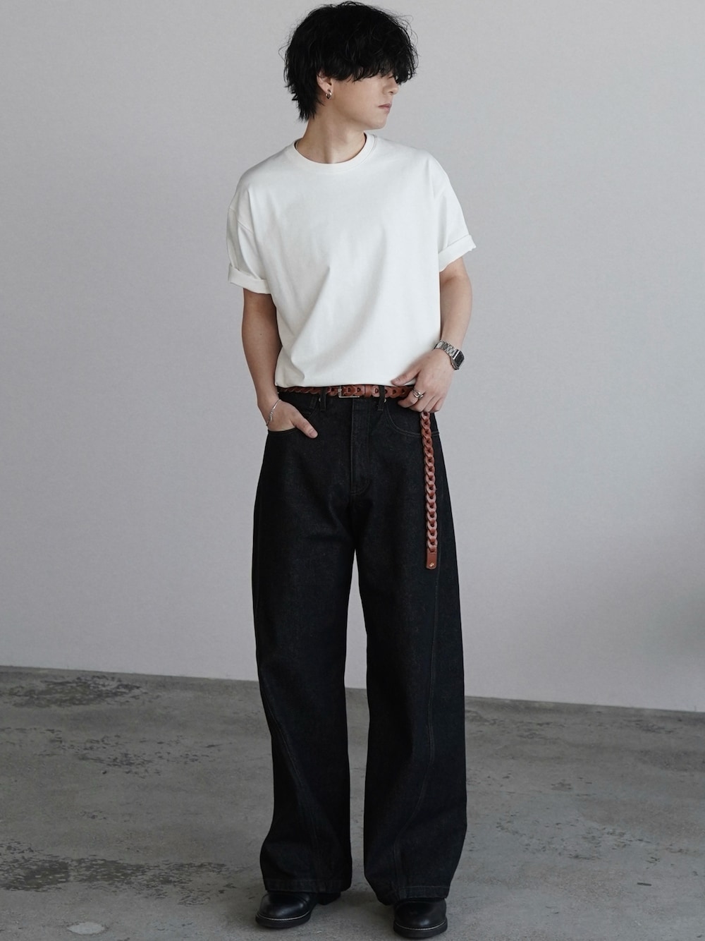 げんじのデニムパンツ「VINTAGE WASHED CURVED DENIM」を使ったコーディネート