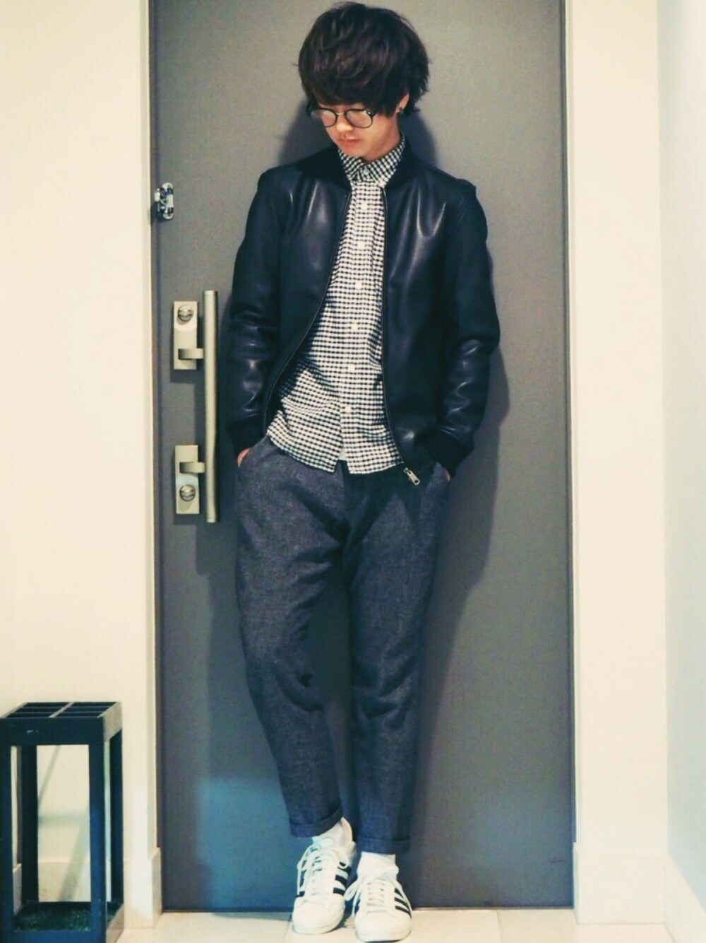 げんじのブルゾン「DOORS Leather Rib Blouson」を使ったコーディネート