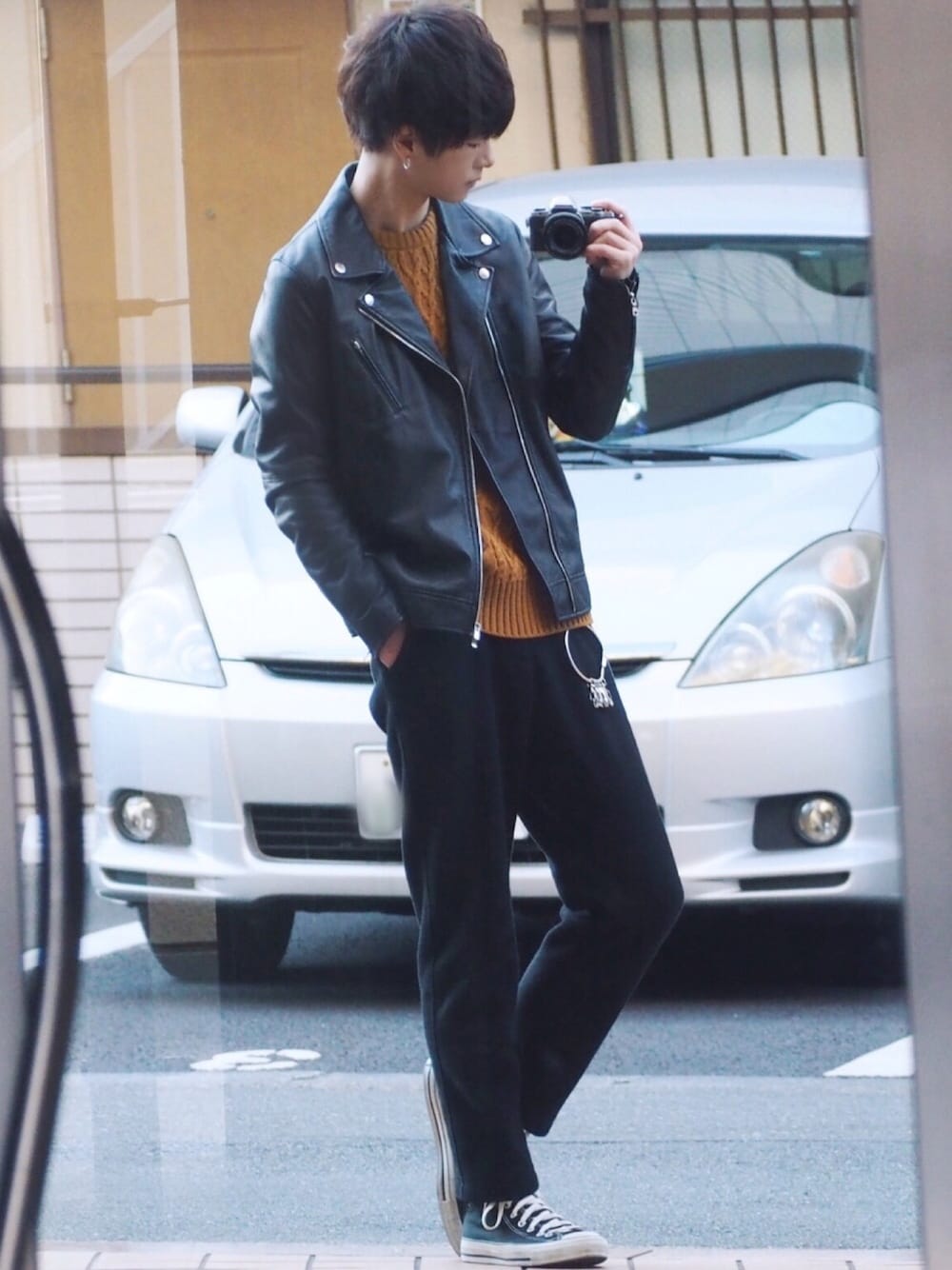 ダブルライダースコーデ😌💫 ニットとパンツがプチプラです! 《サイズ》 アウター M ニット M パンツ S スニーカー 25.5 じゃあʕ•ᴥ•ʔ