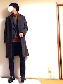 げんじのステンカラーコート「DANTON P/DOUBLE CLOTH COAT」を使ったコーディネート