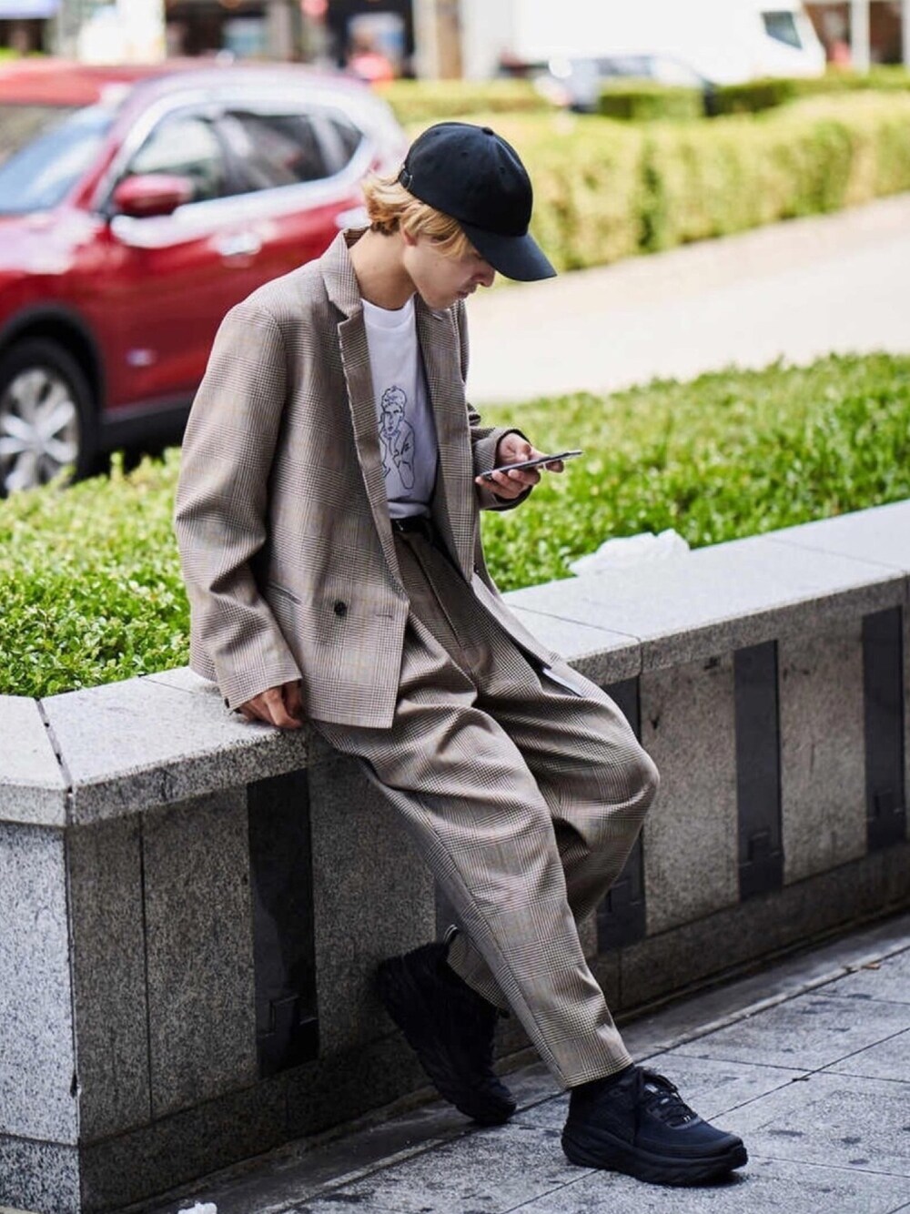 トレンドのグレンチェック素材を、シャープなダブルジャケットの形に落とし込んだジャケット😎 今回もセットアップで!! 店頭ではまだ入荷していないのでお楽しみに✨