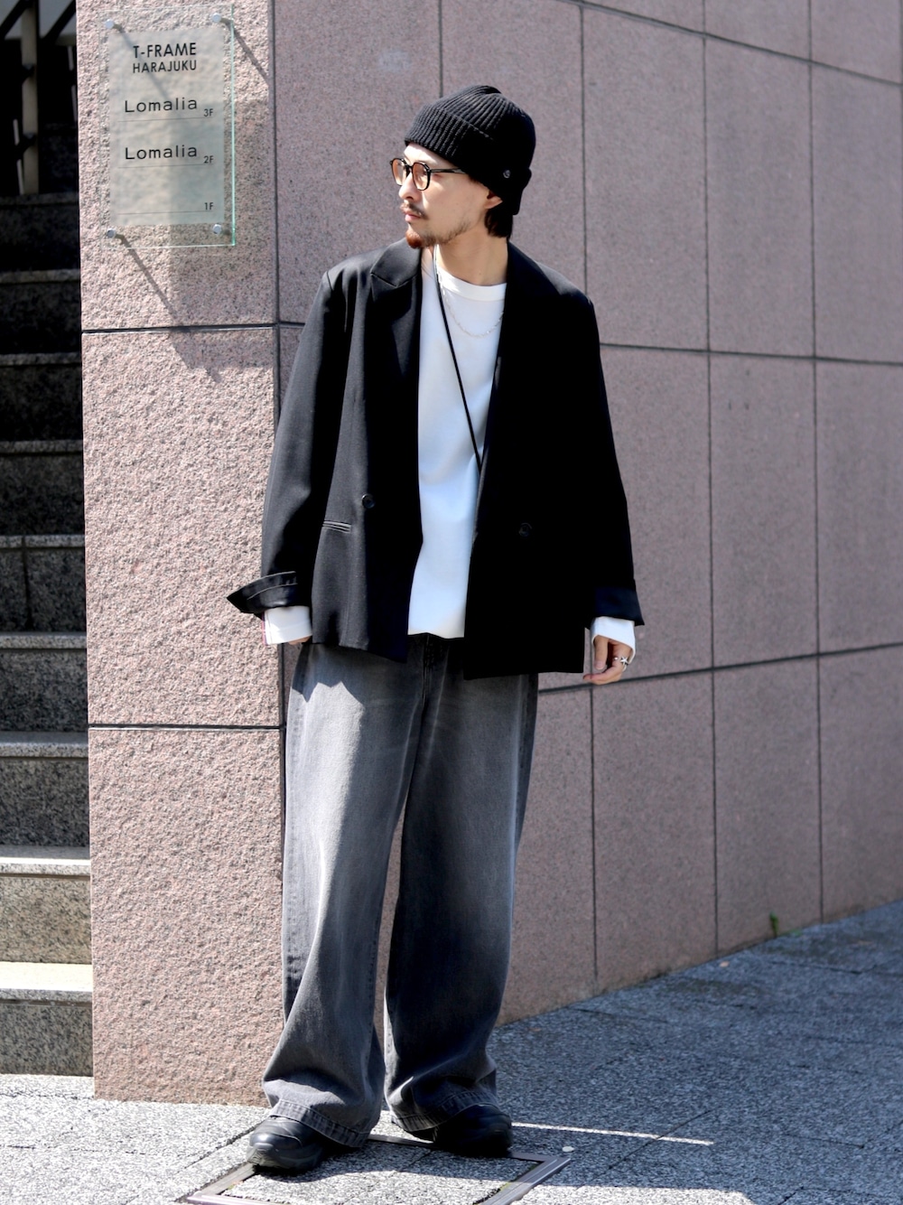 イリザワ(Lui's 神戸店)のテーラードジャケット「【2×2セットアップシリーズ】ベネシャンピークドラペルショートジャケット (セットアップ対応)」を使ったコーディネート