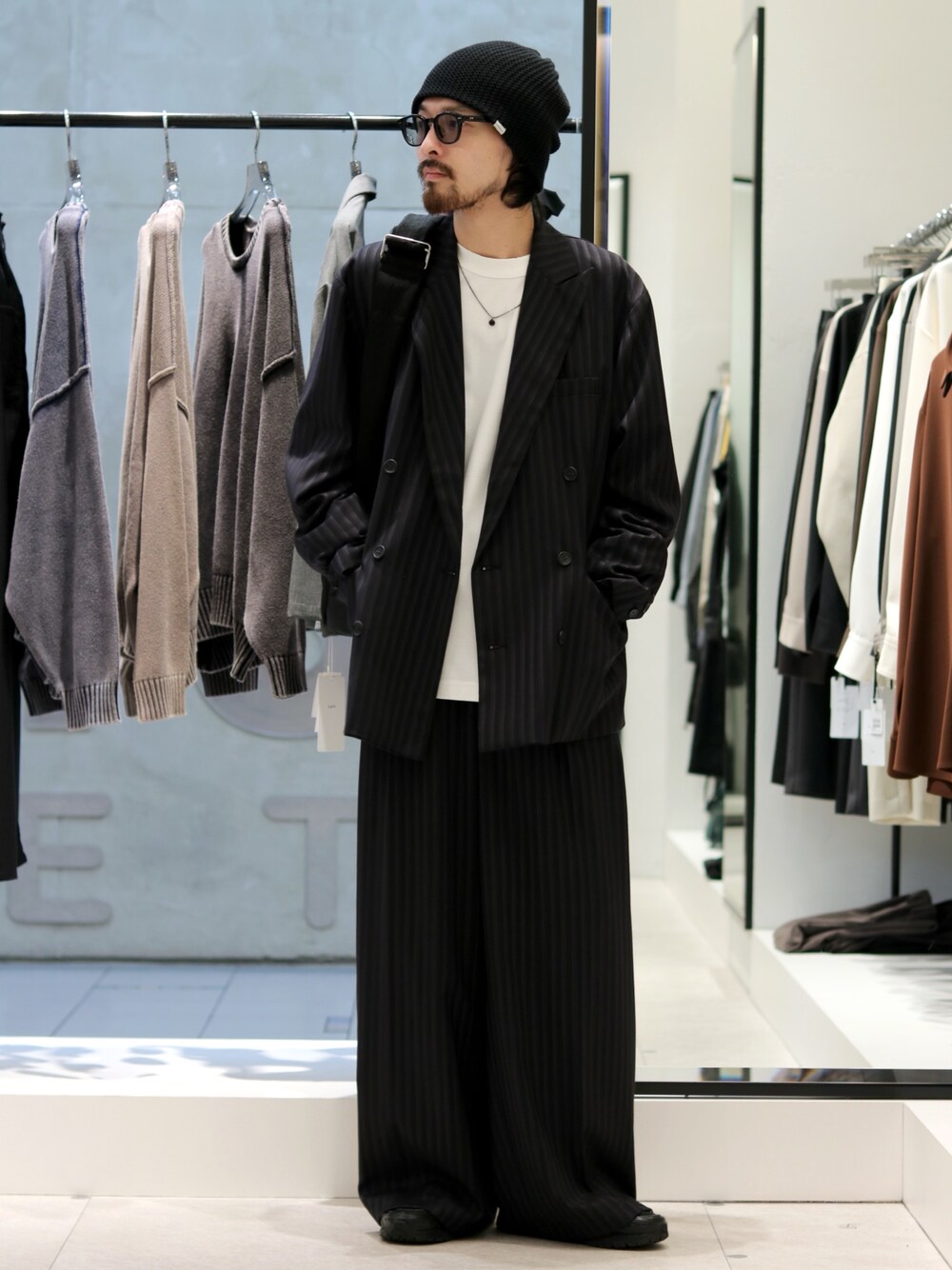 【着用サイズ】 ストライプダブルオーバージャケット / サイズ1 SHINE WIDE カットソー/ FREE ストライプワイドストレートスラックス / サイズ1 model / 168cm.52kg Instagram / @awaziri.m shop / @luis_hepfive 〒530-0017 大阪府大阪市北区角田町5-15 HEPFIVE 1F