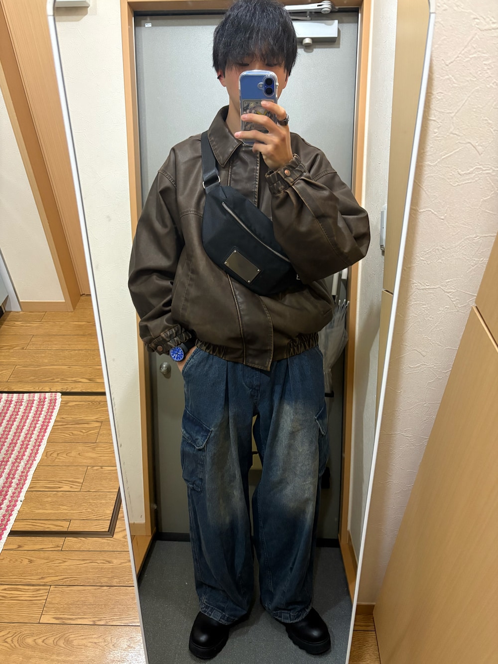 最近買ったレザーブルゾンが気に入ったので1枚! 買った姿見が思ったより小さかったから写真写りは悪いけどいい加工感でめっちゃ気に入ってます!!