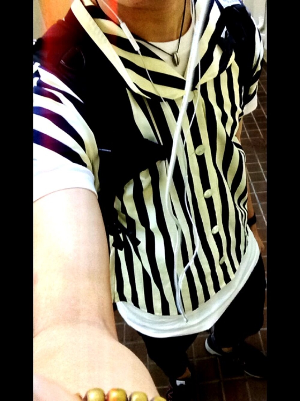 ストライプのセットアップは別々で使いロングTシャツをしたからチラッと☆ ネックレスは最近のお気に入り(´ー`) JILL plattner!!!!!
