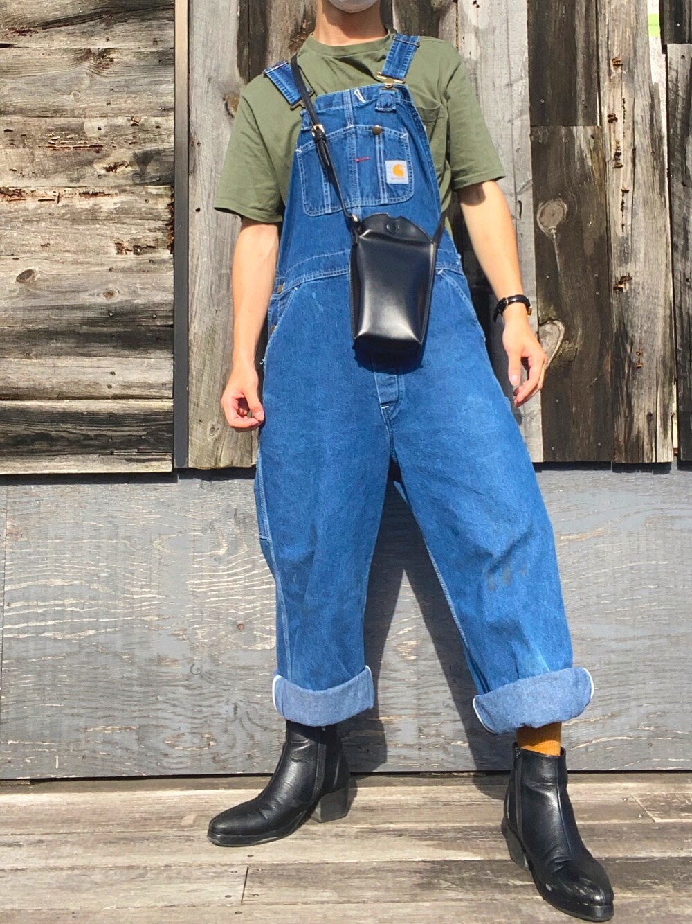 今日はCarharttコーデ😊😊😊 程よいサイズの古着オーバーオール❣️❣️ ブーツで身長ゴリ盛り🥴🥴🥴