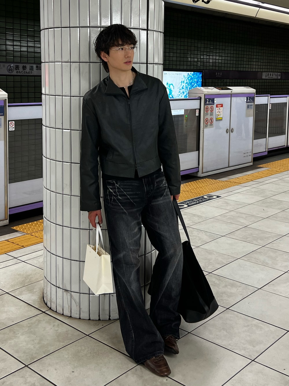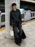 オールブラックではなく、ブラウンで抜け感を演出するような大人カジュアルコーデ