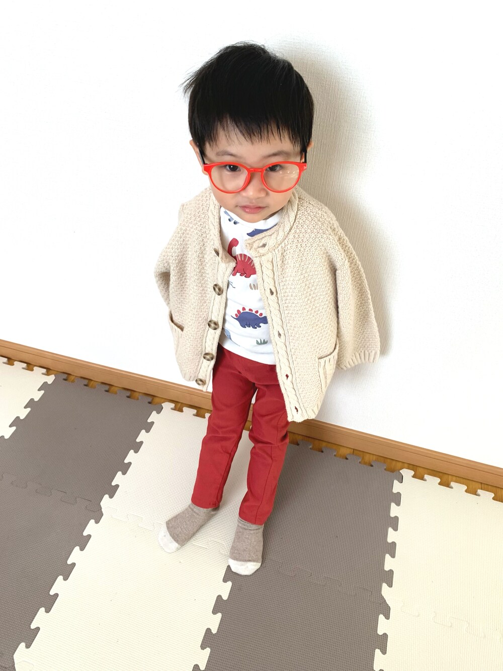 いつもご覧頂きありがとうございます♡ いいね、お気に入り、フォロー、フォルダインもありがとうございます♡ 嬉しいです(*´꒳`*) 2歳息子のコーデです。 今日は赤×白コーデ。 トップスは恐竜柄が可愛いです。 息子、今日は保育園に行きたくなかったようでぐずぐずでした。 どうやら眠たかった模様。 夜、早く寝なさい。