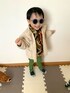 いつもご覧頂きありがとうございます。 いいね、お気に入り、フォロー、フォルダインもありがとうございます。 本当に嬉しいです(*´-`) 2歳息子のコーデです。 換気中だったので暖かさ重視で。 まだ咳コンコンのげんちゃんです。 RSで痩せた。。 そして昨日頬をテーブルにぶつけ、うっすらアザまでできました😭 そんな息子、今日百均でおもちゃのギターを買ってもらいご機嫌。 早速弦部分破壊してました。 破壊。 瞬殺。