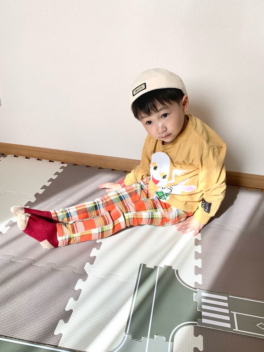 いつもご覧頂きありがとうございます✨ たくさんのいいね、お気に入り、フォロー、フォルダインもありがとうございます😊 今日はイエロー×オレンジコーデ。 白×赤をポイントで。 さて息子、朝ごはんに目玉焼きをあむあむ。 手が滑って下に落としてしまいました。 「おぃ!ヤメロぉ!」 ママに罪をなすり付けようとしてらっしゃる?