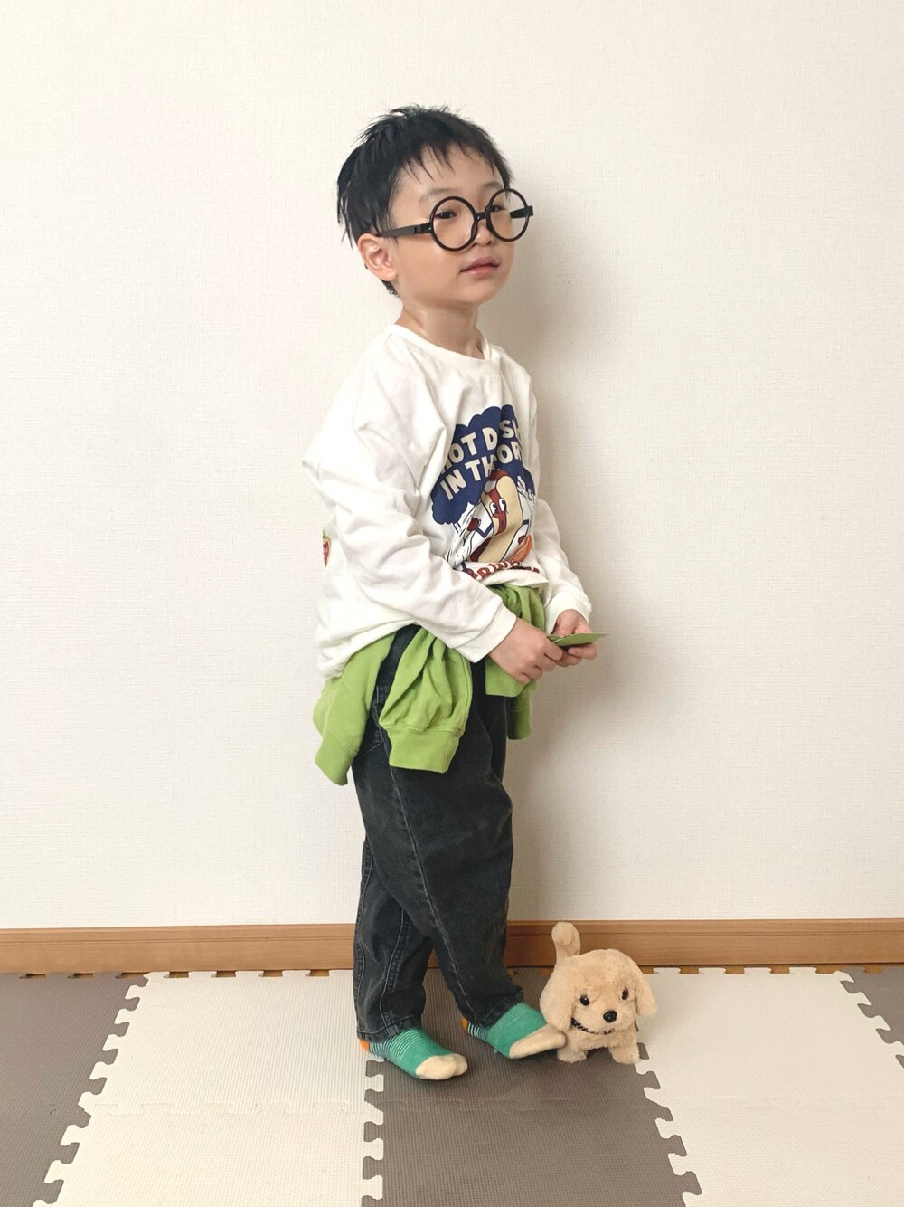 いつもご覧頂きありがとうございます😊 いいね、お気に入り、フォロー、コメント、フォルダインもありがとうございます✨ 今日はロンTメイン。ホットドッグプリントが可愛いです👍✨ピックアップタグ🏷️カーディガンで。え?終わった?じゃあ🏷️デニムで。え?これも終わった?←遅。 さて息子とおままごと。 「はんバーガーいりマせんかァ〜❗️」 「あ、ハンバーガーひとつください。」 「ハイ、チョットまってねェ❗️」 フライパンで具を焼く息子。 「美味しそうですねぇ☺️」 げんちゃん笑顔で言いました。 「ウチ、フルイのシカ、ないカラあ❗️」 「えっ❓」 「フルイのシカ、ないのよォ❗️」 フ ル イ の シ カ な い の よ ォ ❗️ 自信満々に古い材料を 焼きながら言う店主さんよ。 注文キャンセルしてくれんか。