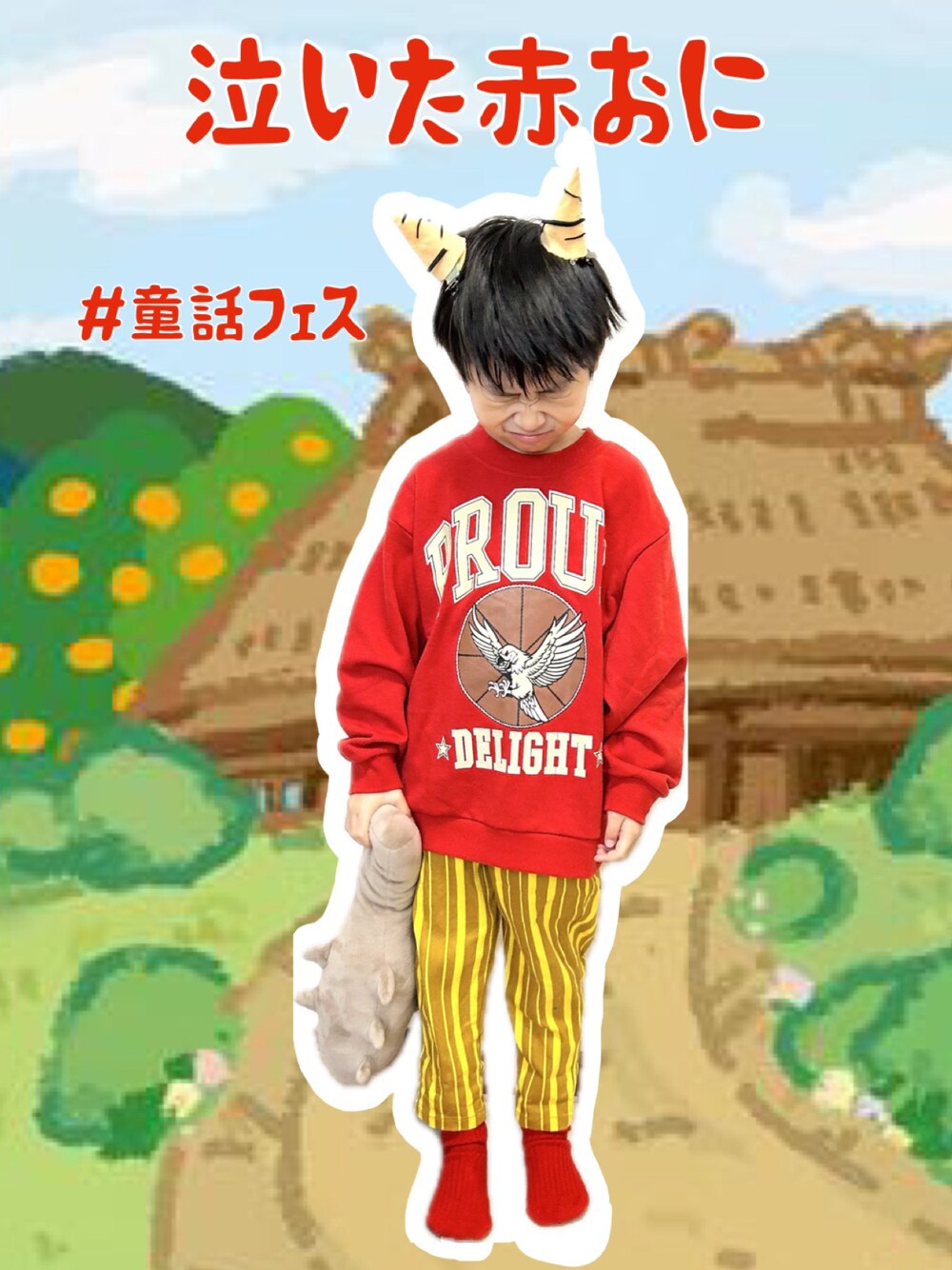 📖童話フェス参加中📖 いつも見て頂きありがとうございます。 良いね、お気に入り、コメントありがとうございます。 今日は泣いた赤鬼。 タイトルは今朝、ママがこの鬼のツノを作っていたら(5分位で作った雑なツノのためシマシマ取れかけてる)言った言葉。 げんちゃん、もう桃太郎は終わったのよ。 昨日のクイズの答えは「メガロドン」でした。 さて、先週保育園のお布団を洗い、 昨夜そのお布団を袋に入れていたのですが。 お布団の枕カバーが無いという事態発生。 でもママは干したのは覚えておりました。 パパに聞いてもわからず。 何故⁉️ もしかして他の洗濯物に混ざってタンスの中❓ とくまなく探してもない。 ママかパパのと一緒に❓❓ と念の為ママとパパのタンスも調べ。 無い。 何度も何度も探してもない。 保育園のリュックの中もない。 どこにもない。 先生に紛失したので見つかり次第 届けるって言うかなと腹を決めました。 それでも無かったらもう作るしかない。 げんちゃん言いました。 「キノー、ぼくタオルたたんだんだけど。。」 そう、昨日げんちゃんがお手伝いしてくれた。 「保育園用のタオル(汗かくので枕と頭の間にタオルを敷いている)はあるのは知ってるよ。」 「げんちゃんたたんでくれたよね☺️ありがとね。」 と言いながらママはハッとしました。 もしかしてとそのタオルを広げたら 中に枕カバーがありました。 ラッピング? もしかして枕カバーをタオルでラッピングしたの?げんちゃん。 あって良かった。 ねぇ、ラッピングしたの?