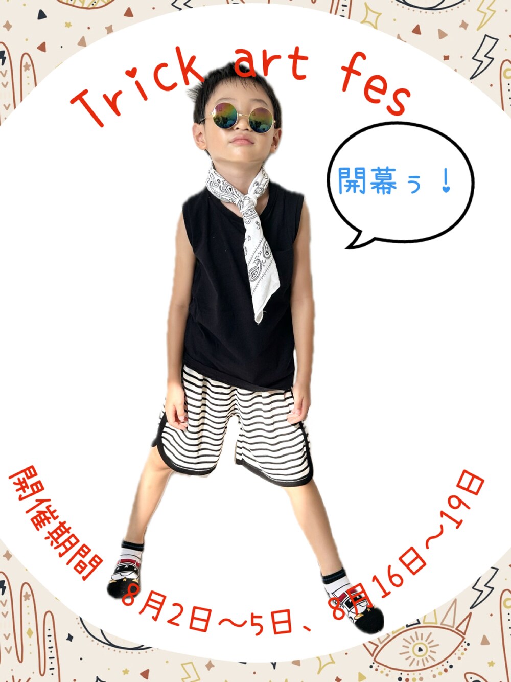 🎨トリックアートフェス参加中🎨 いつも見て頂きありがとうございます。 いいね、お気に入り、コメントありがとうございます✨ トリックアートフェス一発目。 パトカーのおもちゃ、履いてる! って誰も思わないという低レベルトリック。 ネクタイ👔がバンダナ!って誰も思わないトリック。 髪はパンクっぽくセットしたの!?って誰も思わないただの寝癖。 4枚目、げんちゃん口を無くすというトリック。 5枚目、げんちゃん天狗になるというトリック。 4、5枚目はげんちゃん考案。 トリックって何。。。(今更か)。 トリックアートフェスの敷居を勝手に低くするげんちゃんとママであった(さりちゃんごめんね)🫡 さて先日飼い始めたカブトムシ、名前がきまりまして。 カブトムシ1 →カブカブ カブトムシ2 →カブト クワガタ→ クワジロー(考案ありがとう👍✨) さて、ここで残念なお知らせ。 クワジロー、早々に脱走しました。。。 現在捜索隊が増員体制で朝晩捜索しております。 ※タイムリミットはネット民によりますと1週間。 クワジローおぉぉぉぉ😭