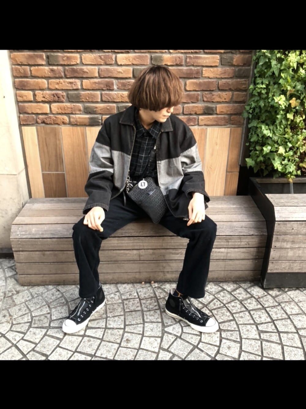 ブラック系のショルダーバッグを着用したメンズの冬コーディネートの1枚目の写真