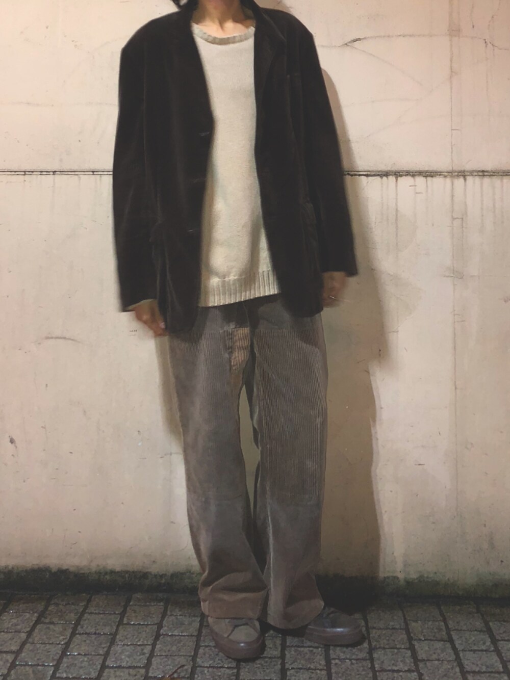 ベージュ系のスニーカーを着用したメンズの冬コーディネートの1枚目の写真