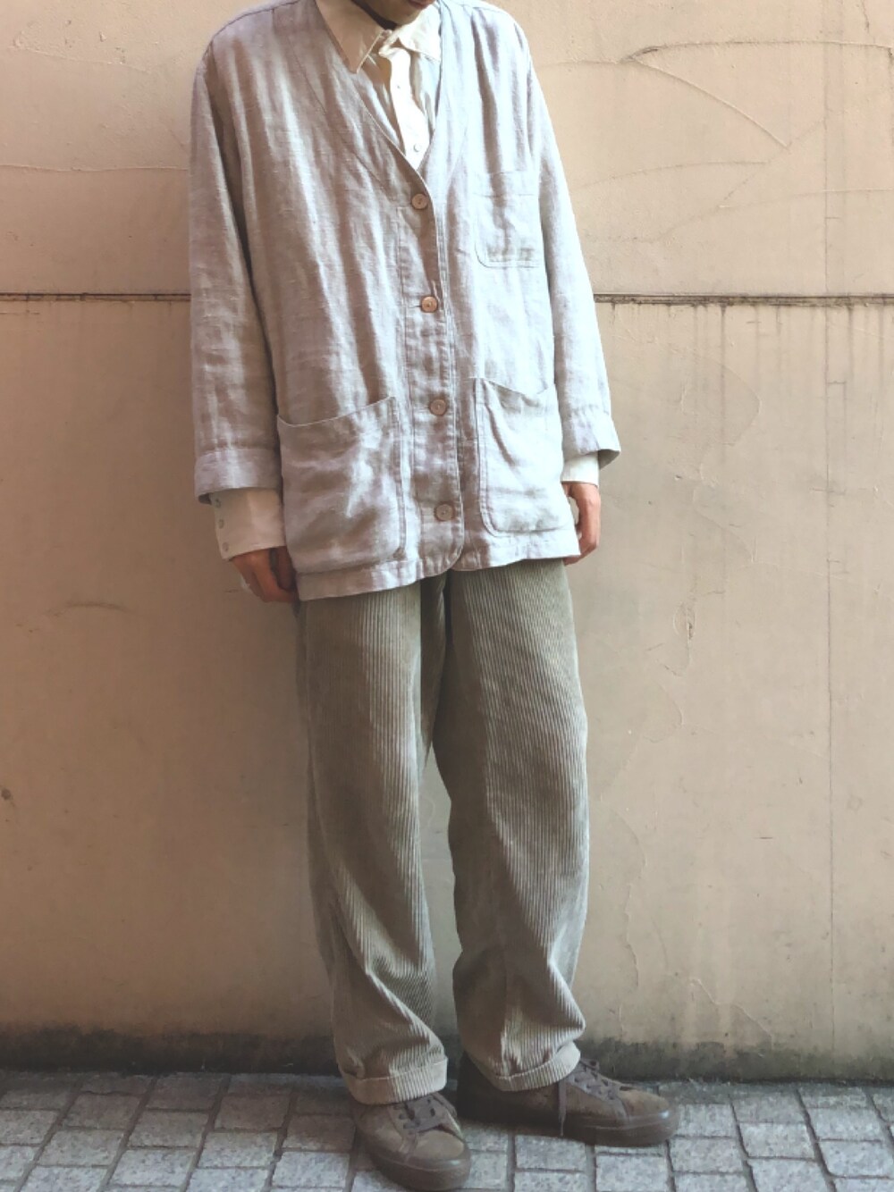 ベージュ系のスニーカーを着用したメンズの冬コーディネートの1枚目の写真