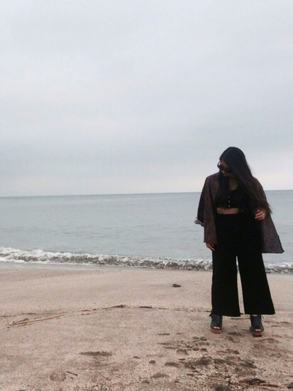 鎌倉の海💨 暑かったので涼しめな格好で☺️ WEGOのブラトップはレースで可愛らしく でもワイドのすらっとしたパンツでかっこく ってとこです! 柄シャツは古着でかってお気に入りです😻 いいね、フォロー、save、お願いします🙇🏻♀️