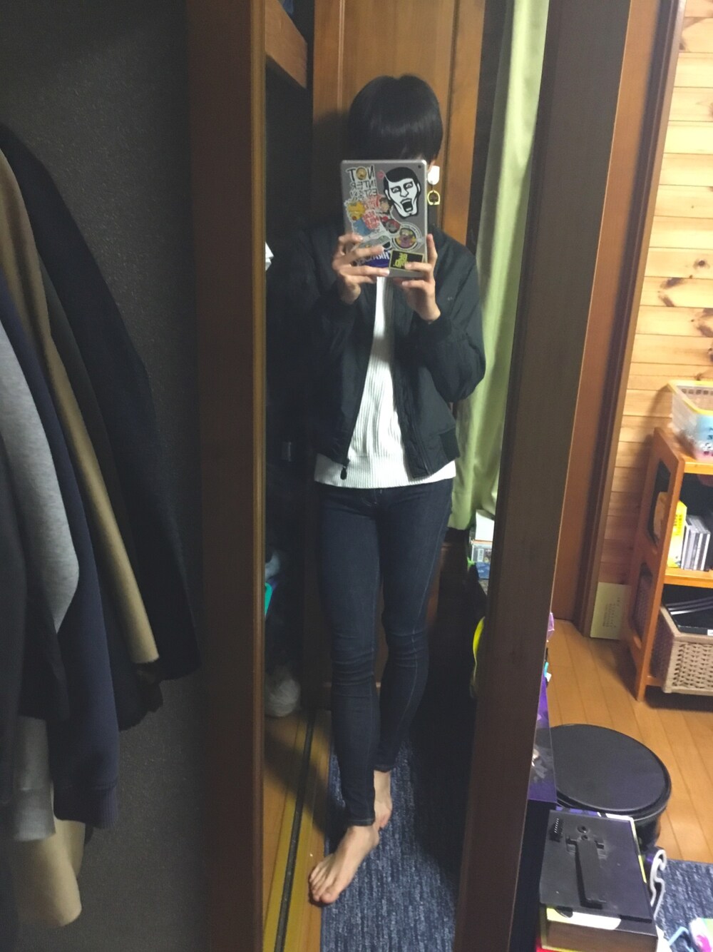 $'muraのデニムパンツ「iSKOハイストレッチスキニー【ネイビー】」を使ったコーディネート