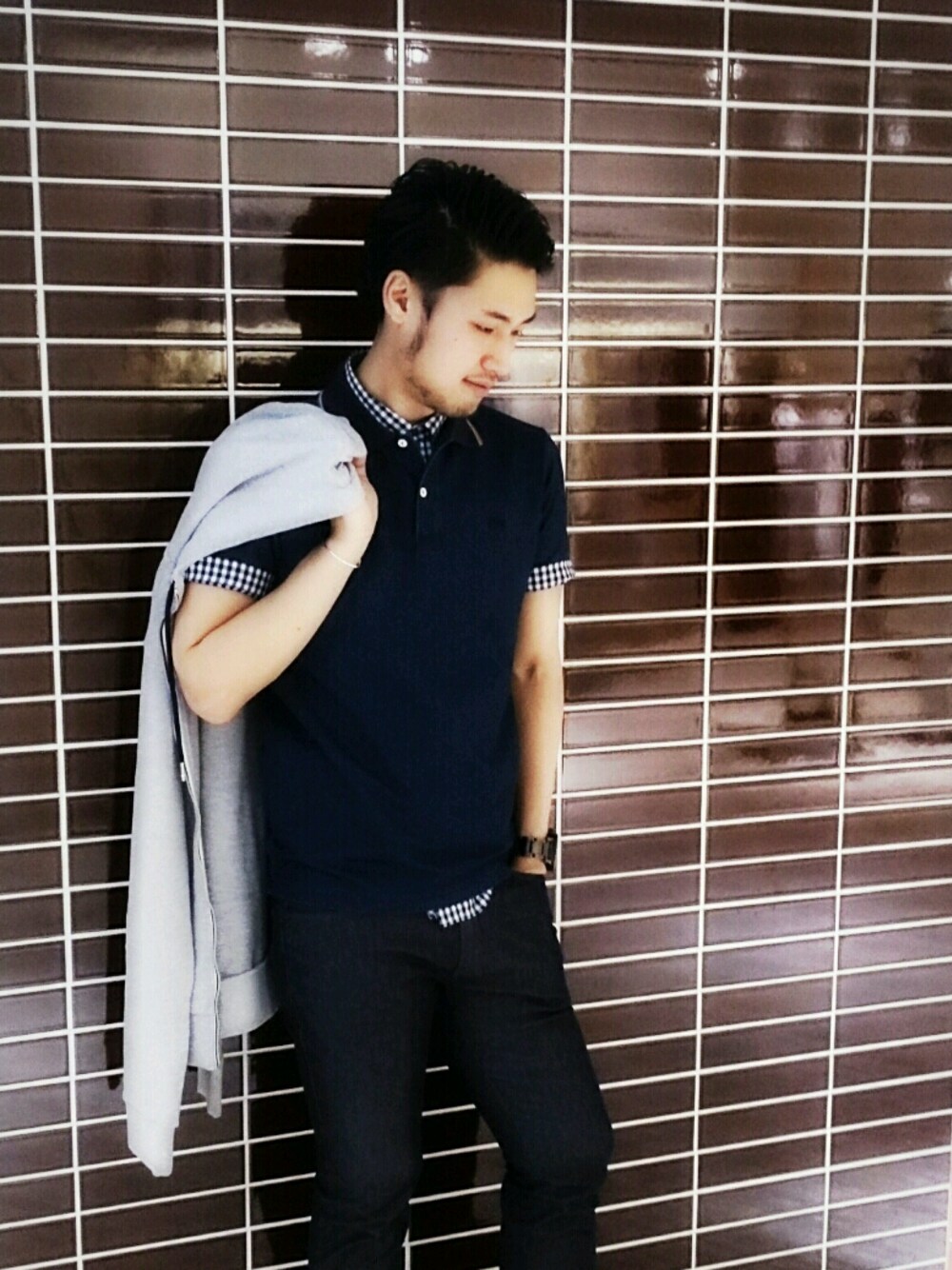 こんにちは! 僕は元気にグランフロント大阪店でバリバリ働いていますよ♪ 最近、やっと暖かくなってきたので、LACOSTEのポロシャツの季節になってきましたよね♪ そこで! 今まさにLACOSTEでは旬の『インディゴ』シリーズです☆ ☆インディゴポロシャツ×チェックシャツ☆ この重ね着はテッパンですよ! インナーに使用しているのはインディゴ染色のチェックでアクセントになります。 しかも、クールマックスなので快適でーす♪ ポロシャツはインディゴ染めのライン入りポロシャツです! ストレッチもきいているので、動きやすさも抜群です☆ ☆ボトム☆ ここでのポイントはワントーン&インディゴにしたかったので、デニムの味わいを製品染めしたパンツです。 こちらもストレッチをきかせているので、履きやすさ動きやすさも抜群♪ ☆肩掛けパーカー☆ 朝、晩はどーしても寒いので、肩にパーカーをかけちゃったり、腰にまいたりしてもいいですね♪ この時期には欠かせないマストなアイテムですよねー♪♪ 今回はワントーン&インディゴのコーディネートでした♪ 今度はカラフルで攻めたいと思いますので、ご期待くださいませ♪(/ω\*)