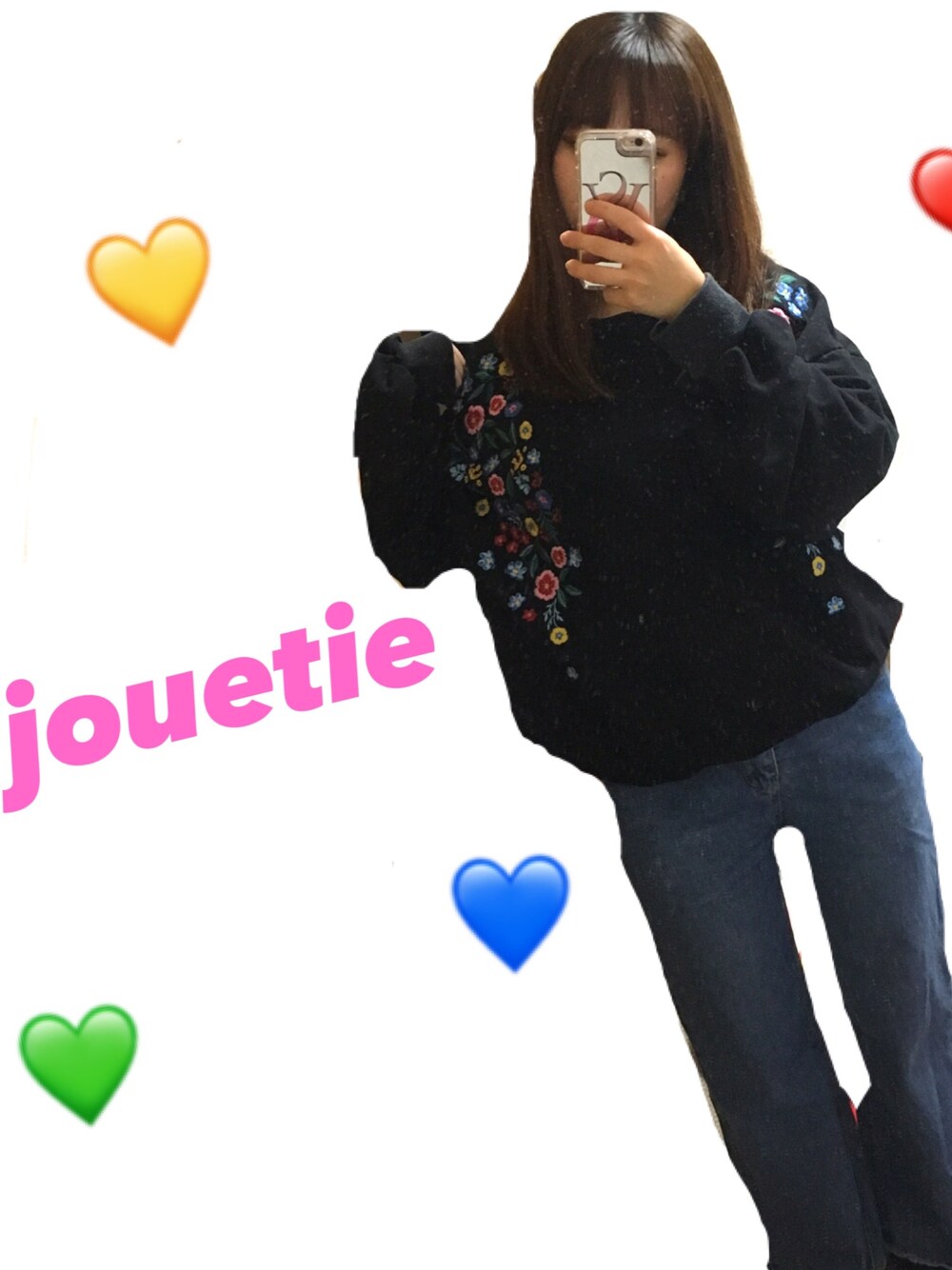 晩ごはん食べに行くのに寒いから着替えた! このスウェットほんまにお気に入り〜😚 カラフルな刺繍て大好物💓💓
