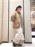 カジュアルなブルゾンにレーススカートをポイントで合わせた大人コーデ。 アクセントになるラップレースで女性らしさをプラスに。