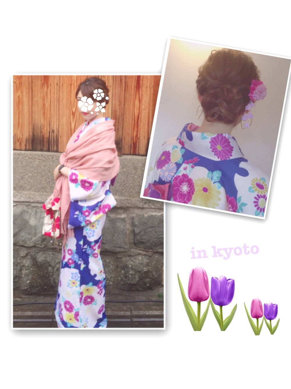 花屋さんstyle番外編。 先月、京都に行ったときのキモノです👘 ヘアもとってもステキにしてもらって大満足🎵