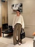 急に暑くなった今の時期にさらりと着られるメッシュニット 綿と和紙を基にした軽い素材なので夏まで着られます。 ホワイトとベージュのトーンコーデで見た目も涼しげに。