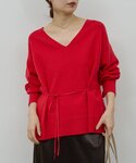 赤好きにたまらないキレイなレッド。 インフルエンサーちかさんコラボ! 深すぎないVネックラインなので一枚で着ても◎ 気温によってカットソーやシアータートルなどレイヤードもおすすめ。 細い紐はアレンジして後ろから見た時にポイントになるようにリボン結びに。 紐は前に垂らしています。 ヘリテノームのワイドパンツとあわせました。 赤はグレーの相性抜群です!