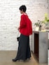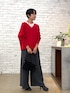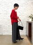 赤好きにたまらないキレイなレッド。 インフルエンサーちかさんコラボ! 深すぎないVネックラインなので一枚で着ても◎ 気温によってカットソーやシアータートルなどレイヤードもおすすめ。 細い紐はアレンジして後ろから見た時にポイントになるようにリボン結びに。 紐は前に垂らしています。 ヘリテノームのワイドパンツとあわせました。 赤はグレーの相性抜群です!