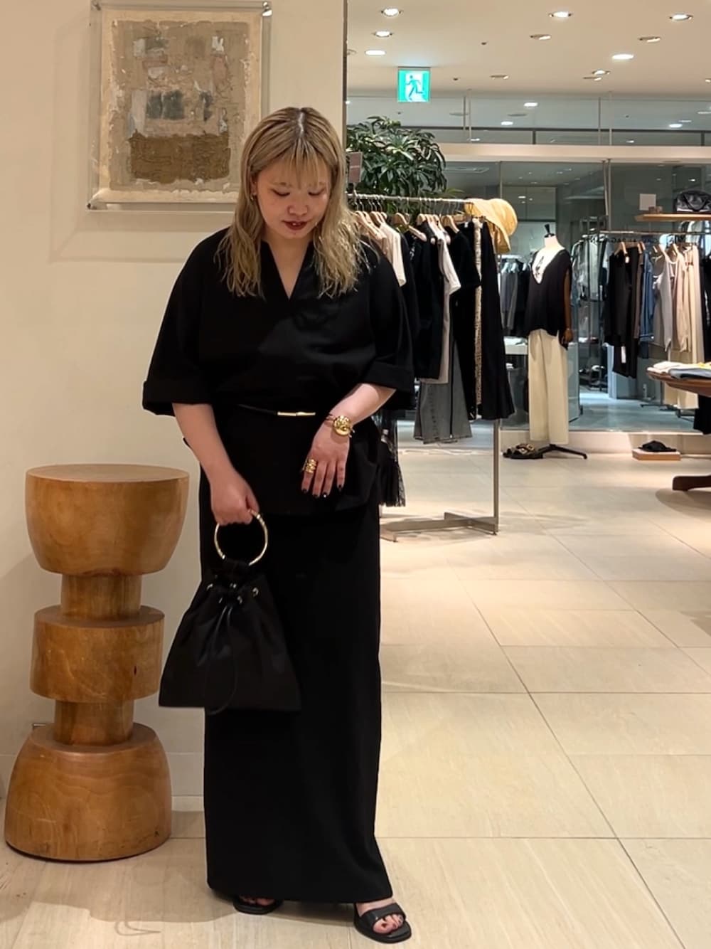 大人気のブラウスは、接触冷感でかつ速乾性もあるので暑い夏のお出かけにもおすすめ タイトスカートはあのジャージーシリーズ! 文句なしの穿き心地です タイトスカートは腰まわりのラインを取りやすいのでトップスはアウトスタイルで、ベルトでウエストマークをしました