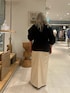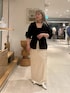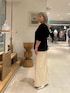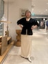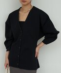 ウエストのシェイプがキレイなカーディガン ハリがある素材で肩周りは膨らみやすいので、手首を見せてスッキリ着こなすのがおすすめです。
